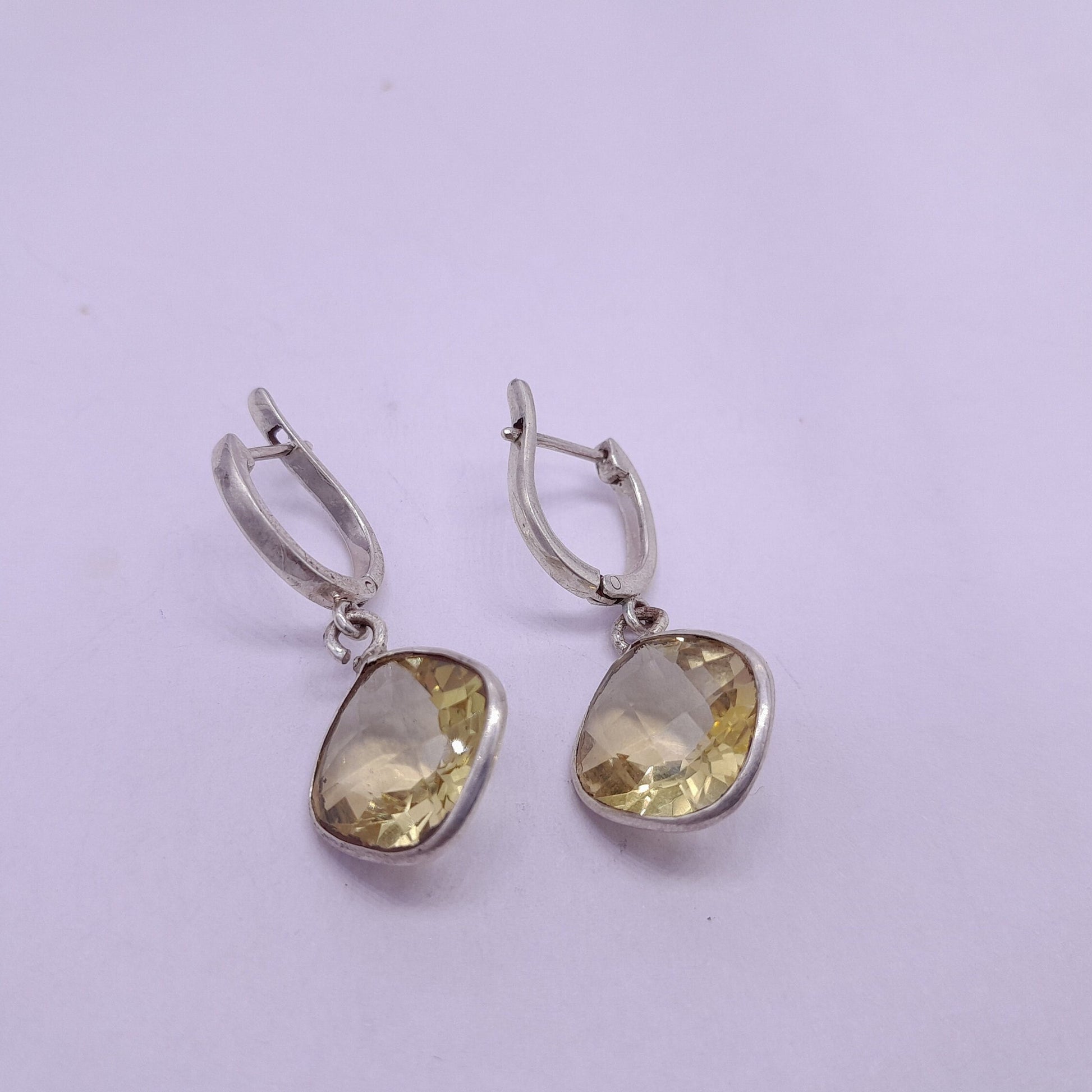 925 Sterling Silver Natural Lemon Quartz Dangle Earring, Dainty Lemon Quartz Dangle Earrings, Natural Gemstone Earrings Jewelry Gift For Her
