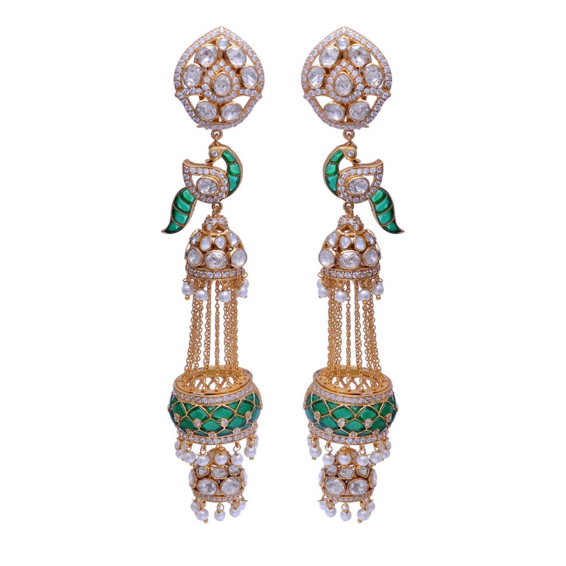 Traditional Indian Jewelry made in 925 sterling silver blend in with moissanite and Emerald. gives you victorian bridal look, These Bollywood earrings are perfect for every occasion.
