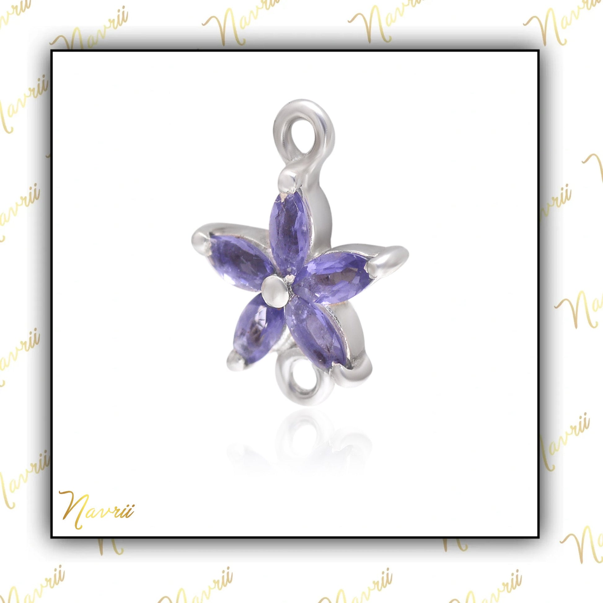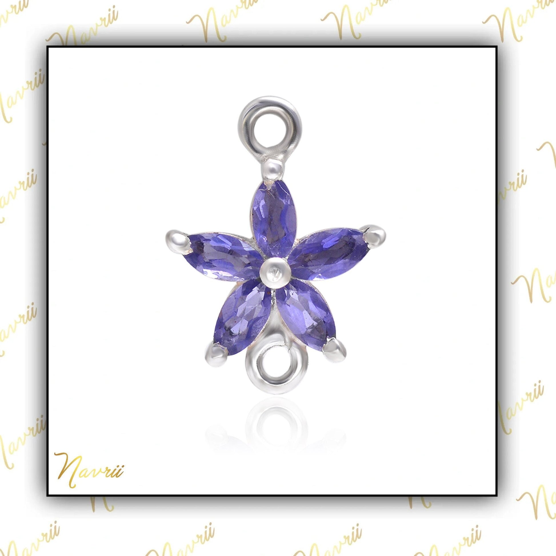 Iolite Flower Pendant Necklace, Sterling Silver, Silver Flower Pendant, Dainty Flower Pendant Necklace, 925 Silver Pendant Natural Gemstone